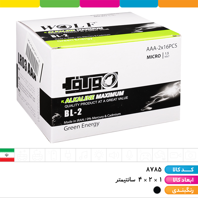 باتری نیم قلمی ۲ عددی آلکالاین ماکزیمم ولف