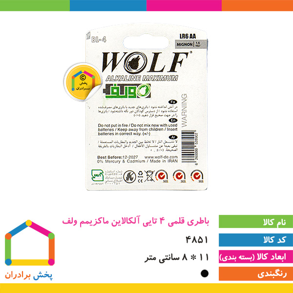 باطری قلمی۴ عددی آلکالاین ماکزیمم ولف