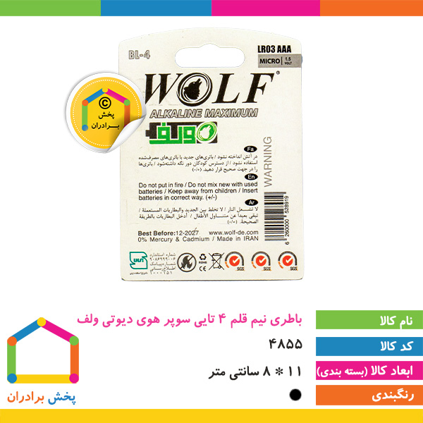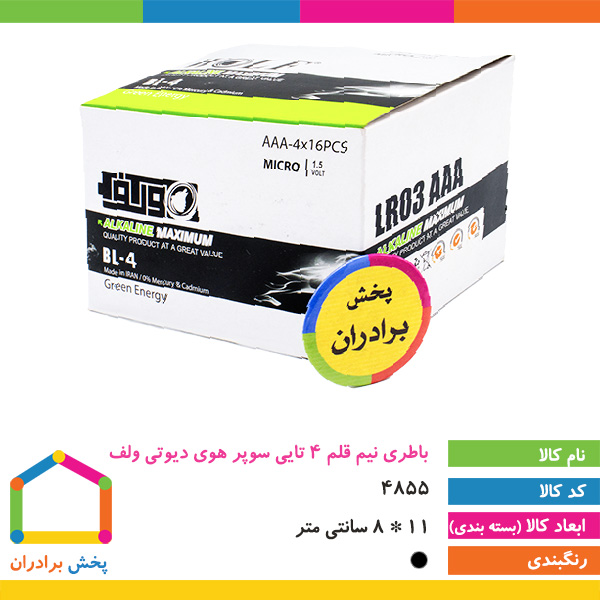 باطری نیم قلم ۴ عددی آلکالاین ماکزیمم ولف