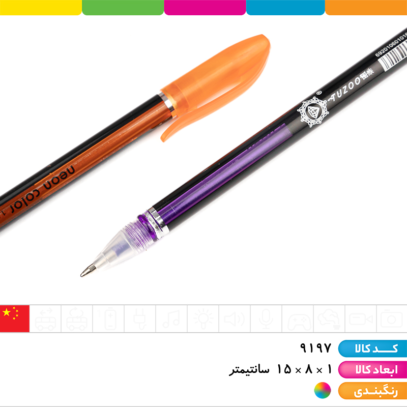 خودکار رنگی اکلیلی نئونی ۸ رنگ
