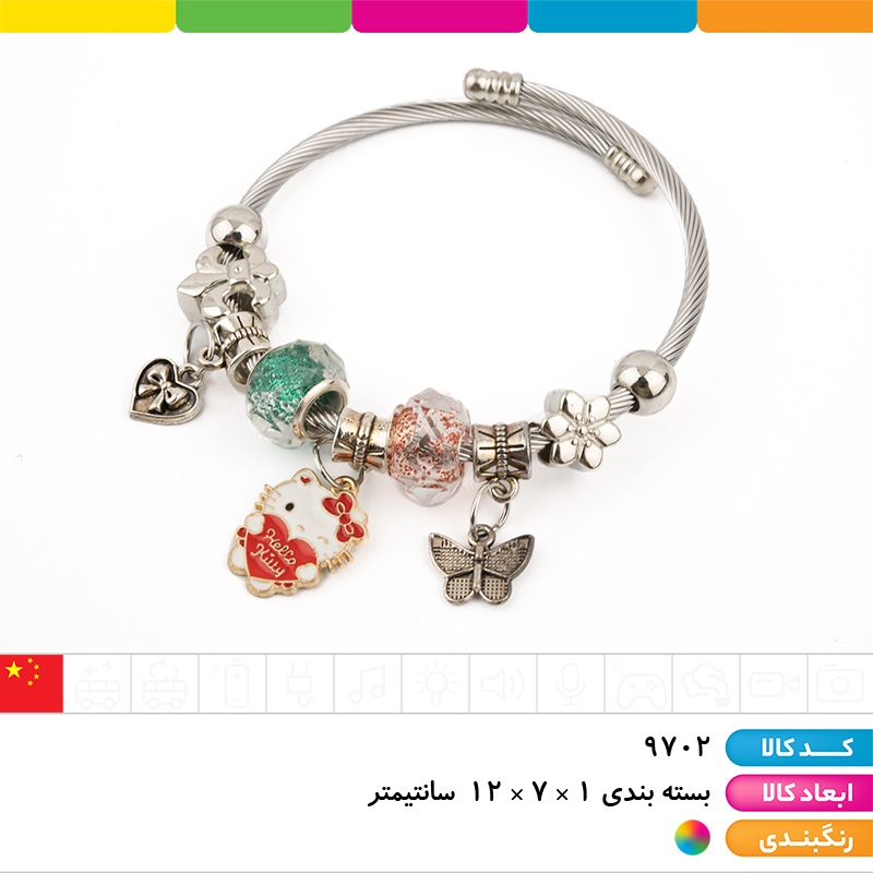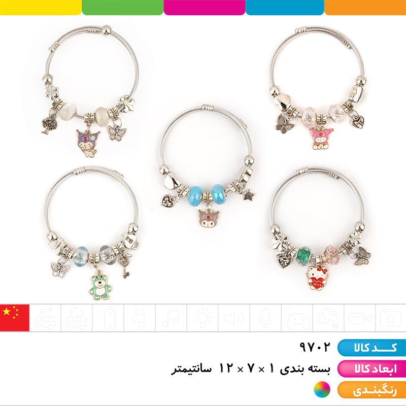 دستبند بنگل فلزی آویزدار شخصیتی روکارتی