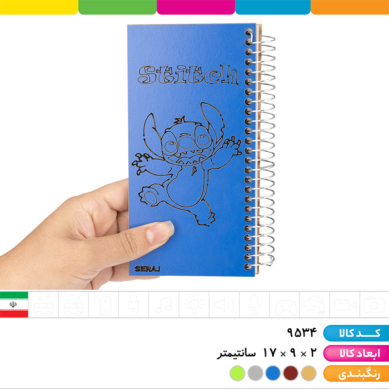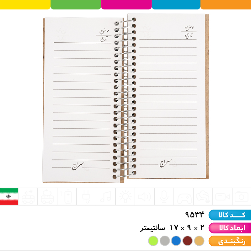دفترچه یادداشت فنری جلد چوبی طرح دار