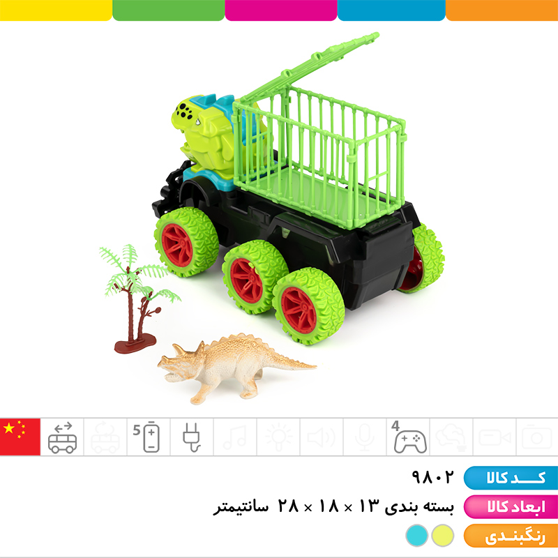 ماشین کنترلی ۴ کانال شارژی حمل دایناسور ۶ چرخ