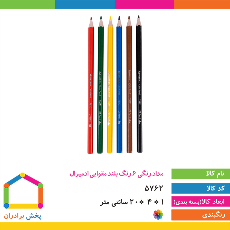 مداد رنگی ۶ رنگ بلند مقوایی ادمیرال
