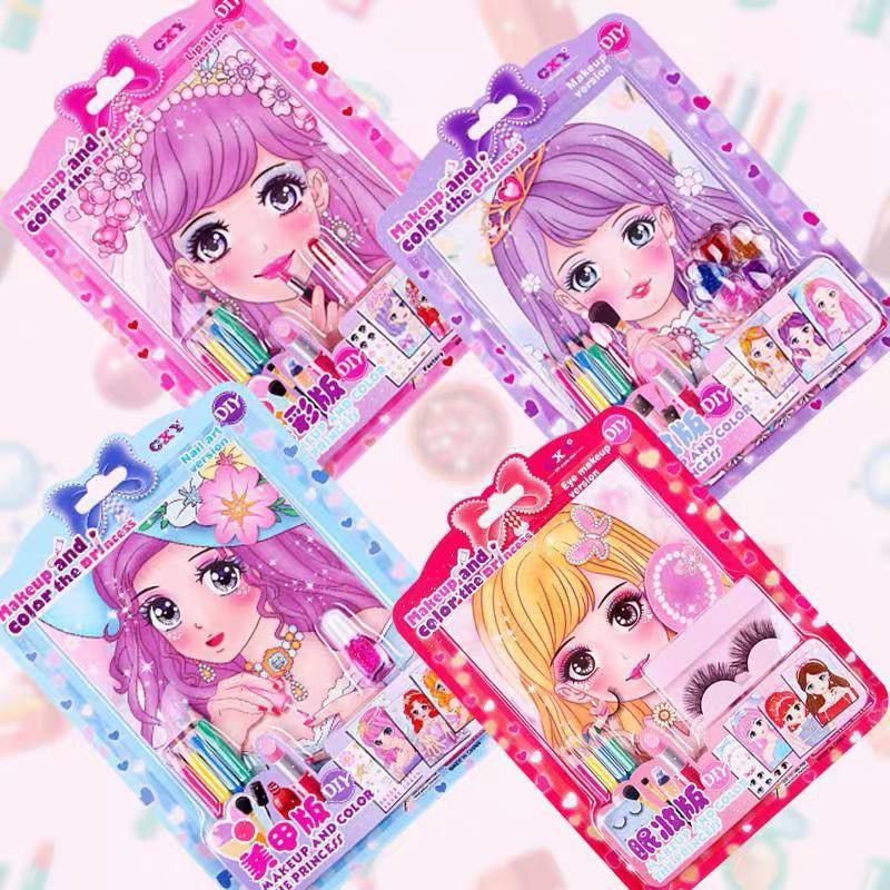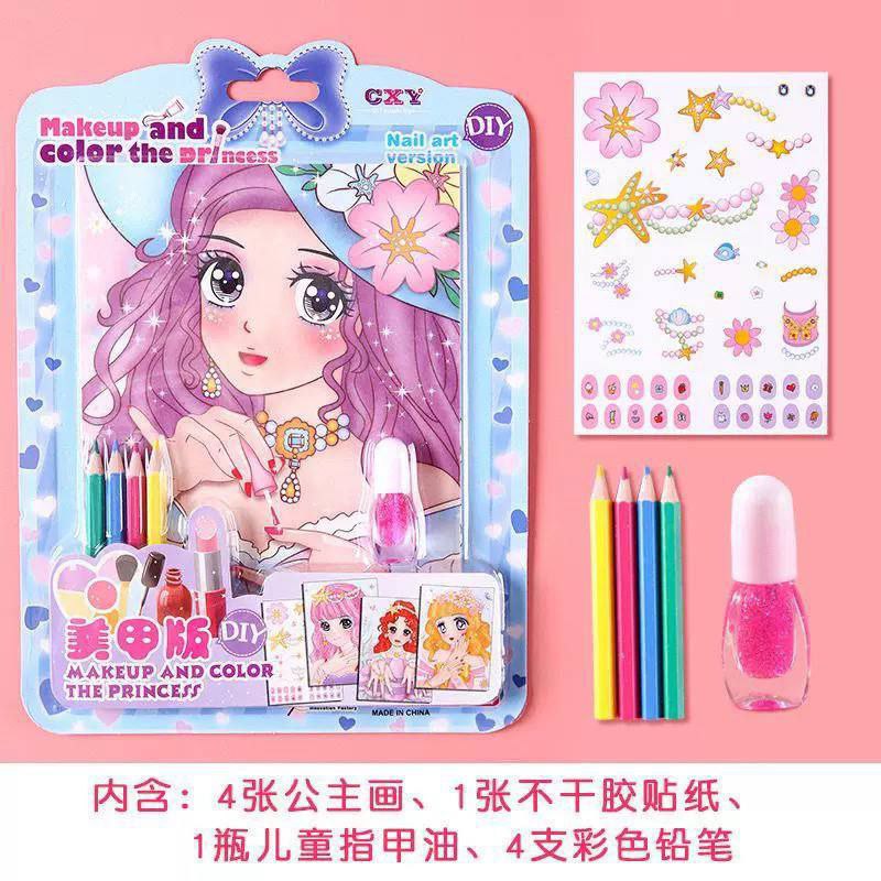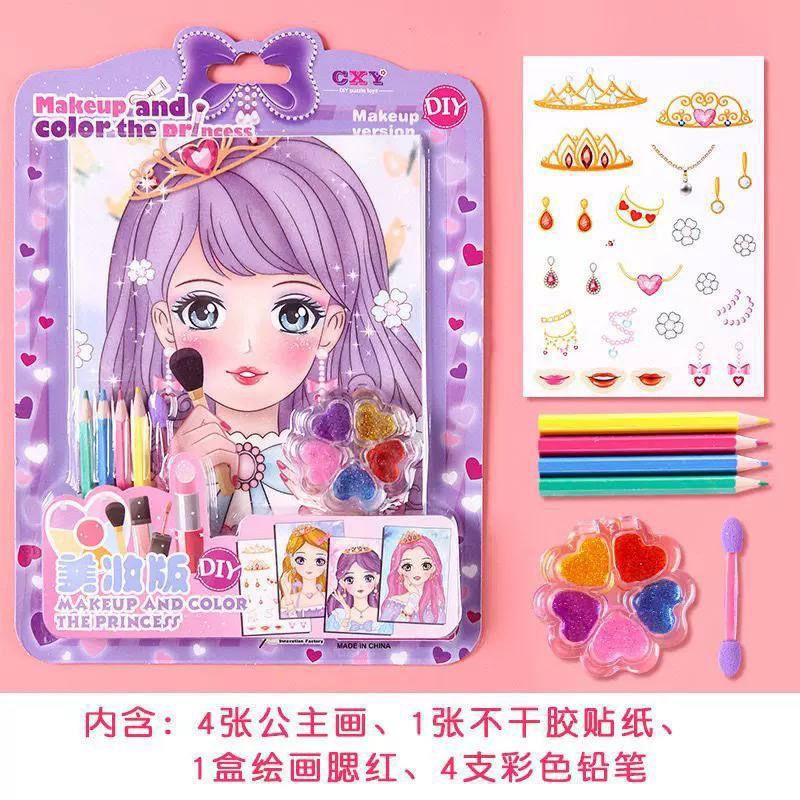 شامل مدادشمعی، رژلب، مژه مصنوعی، سایه چشم، طرح پرنسس، لاک ناخن، استیکر و کتاب طراحی ؛