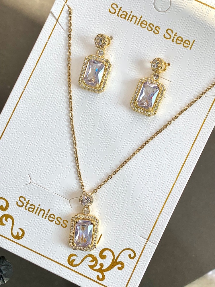 نیم ست گردنبند و گوشواره کوارتز