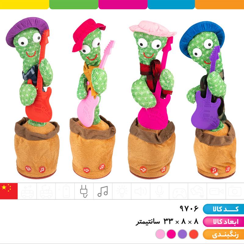 کاکتوس سخنگو موزیکال کلاه دار گیتار به دست